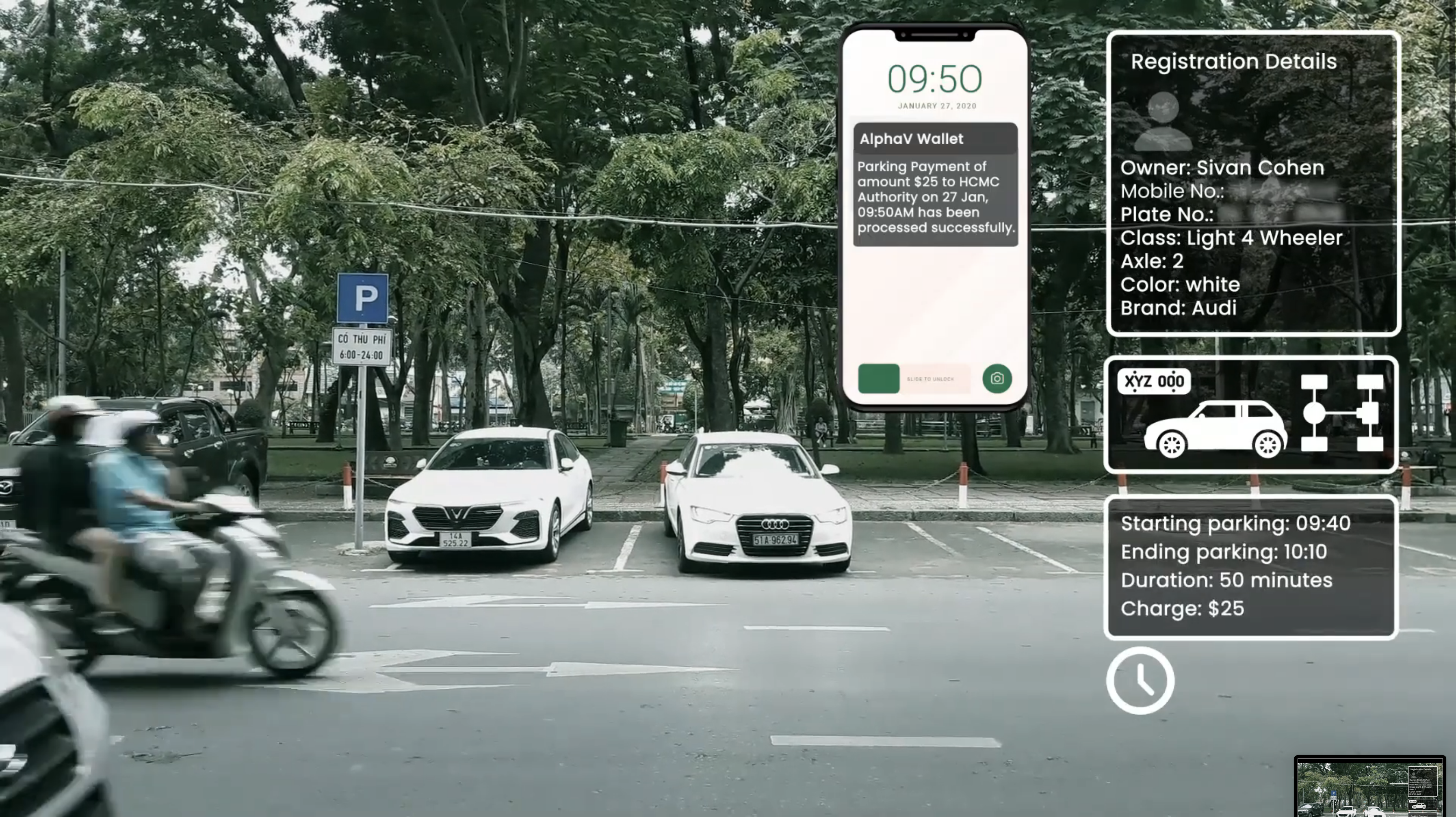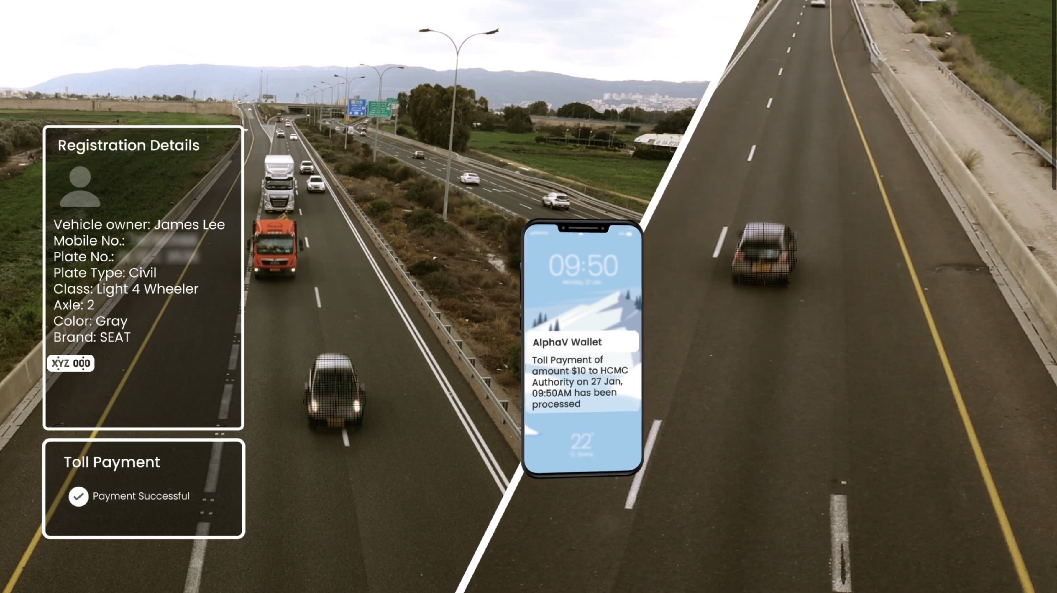 Traditional tolling mechanisms use old RFID tag technology, which requires expensive infrastructure and highly involved maintenance to ensure accurate payments. But thanks to AlphaV’s secure payment platform, powered by state-of-the-art AI technology, toll payments have been simplified. This new approach fully eliminates manual cash transactions and doesn’t require drivers to have additional RFID devices in their vehicles. The completely video-based system creates a vehicle profile used for multipoint verification, resulting in high recognition accuracy.